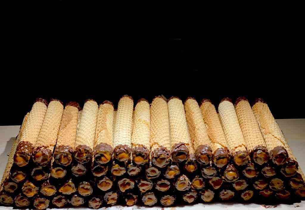 Barquillo grande con borde de chocolate relleno de manjar